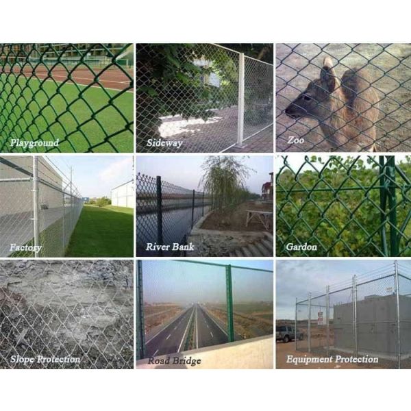 Chain link fence can be uded in gardens, parks, roads, sports, industrial sites, sports field, river banks, construction and residence, also animal fencing.